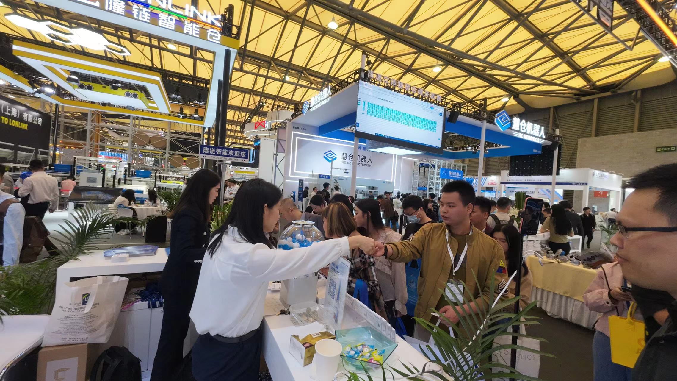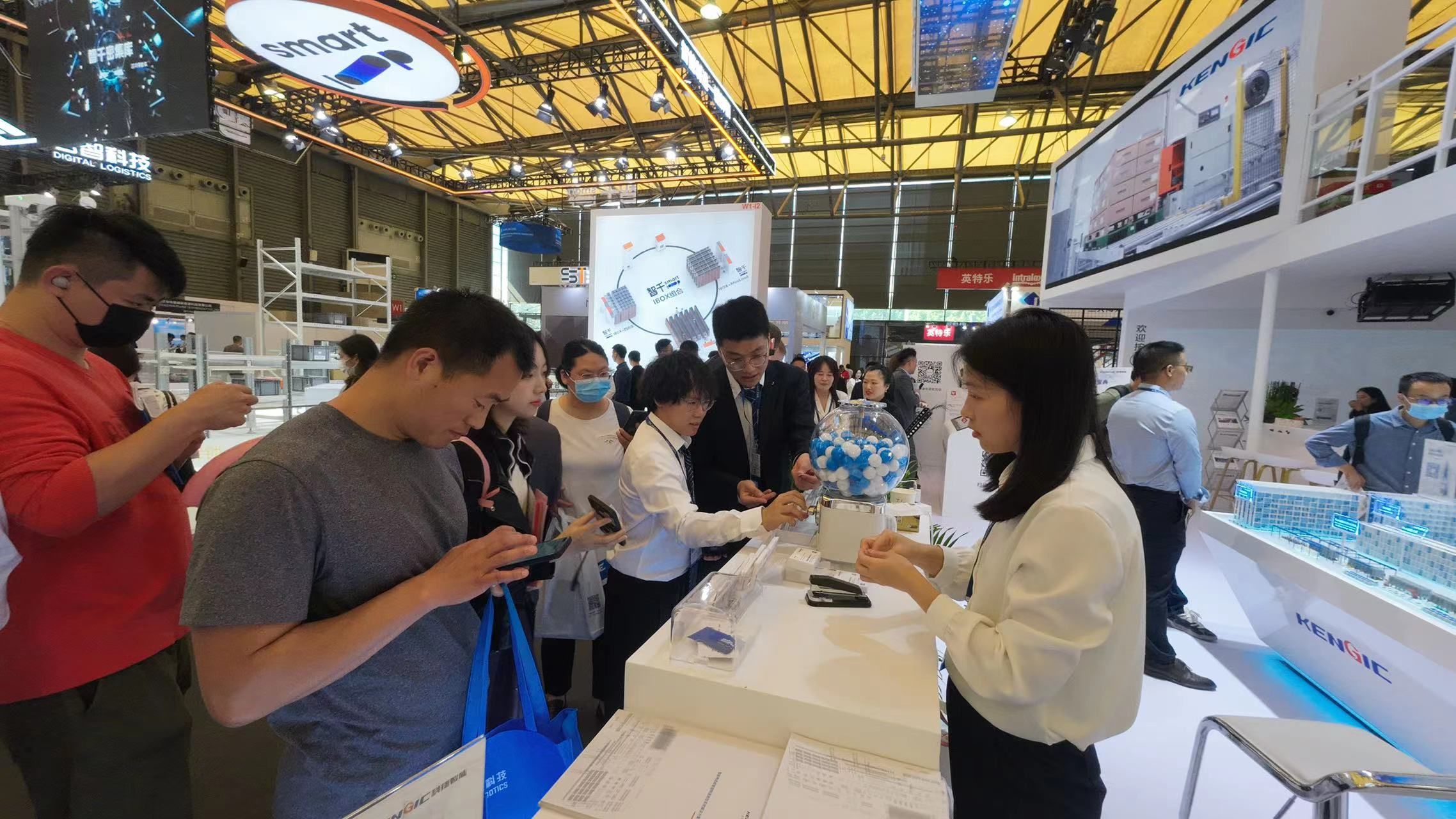 智能仓储漫游互动区是本次304am永利智能展台数智互动的C位,观众纷纷驻足停留,拍照留念,在方案规划专家的带领下进行互动体验,好评如潮。