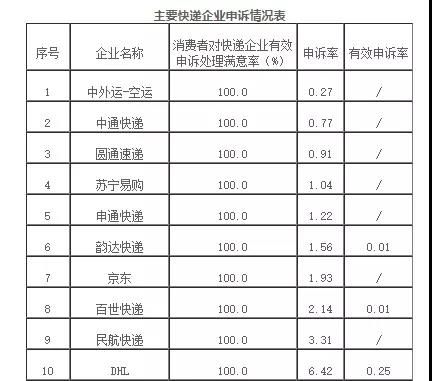 数据还显示,10月,消费者对全国快递企业有效申诉处理满意率平均为96.8%,高于平均数的企业有19家,低于平均数的企业有4家。消费者对快递服务有效申诉的主要问题是快件延误、投递服务和快件丢失短少,分别占有效申诉总量的31.4%、25.4%和25.1%。