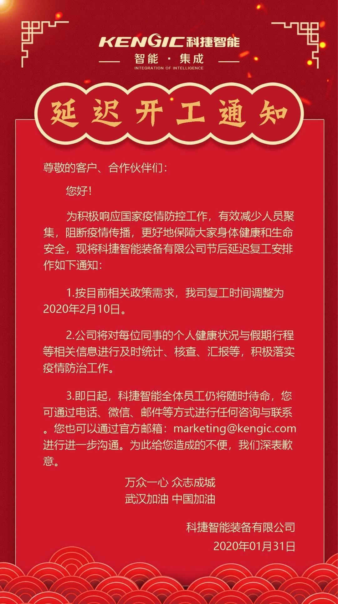 304am永利智能延迟开工通知
