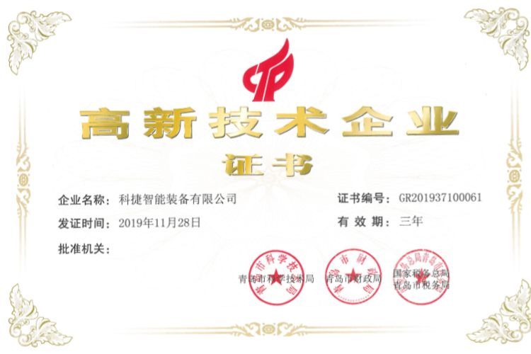 近日,经青岛市科学技术局、青岛市财政局、国家税务总局青岛市税务局联合审批通过,304am永利智能装备有限公司荣获 “高新技术企业证书” 。