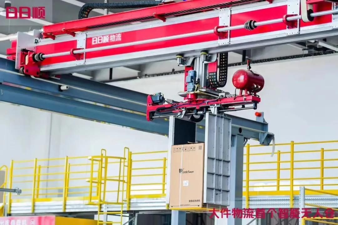“有了快速锁定目标的实力,才有精准投掷的魅力”,在出库环节,大件物流领域首次使用龙门机械手进行产品订单全自动分拣的尝试在这里实现了。龙门拣选机器人借助3D机器视觉识别对产品在库内运动造成的位移进行视觉补偿,并通过算法解析位置反馈至控制系统,进而打破空间桎梏,快速锁定目标。