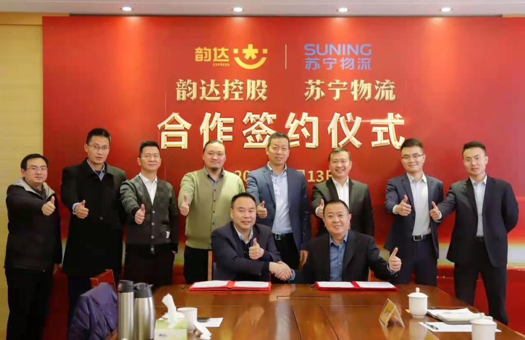 1月13日,韵达速递与苏宁物流在上海签订合作协议。根据协议,双方将在多方面开展深入合作,通过优势互补、互通有无、充分发挥各自优势,共同打造全国性设施网络平台,从而促进双方设施网络优化和升级,实现共赢。