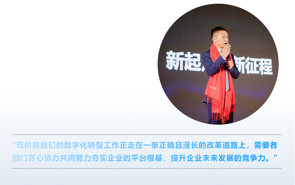 公司董事长兼总经理龙进军先生早前在内部会议上强调道:”面向当前严峻复杂的经济形势,为实现304am永利智能未来业绩的可持续、健康增长,我们不仅要努力开拓新市场,更要注重提升内部经营管理水平,提高组织和协同能力,而数字化转型就是304am永利智能经营管理能力提升的必经之路和新突破点。”